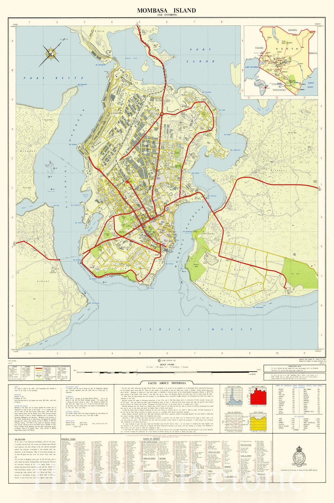 Map : Mombasa, Kenya 1963, Mombasa island and environs , Antique