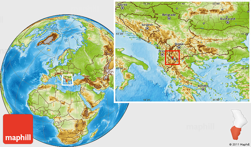 Physical Location Map of Ohrid, within the entire country